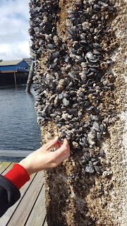 We were out of the site by 10 and off to the docks in Prince Rupert. We went out on them at pretty low tide and saw some starfish, jellyfish and lots of interesting boats. This is the first time i have been to an ocean that i remember. I have seen a photo of myself in Prince Rupert but i dont remember it. Julie has been to Holland so she had seen this type of stuff before.